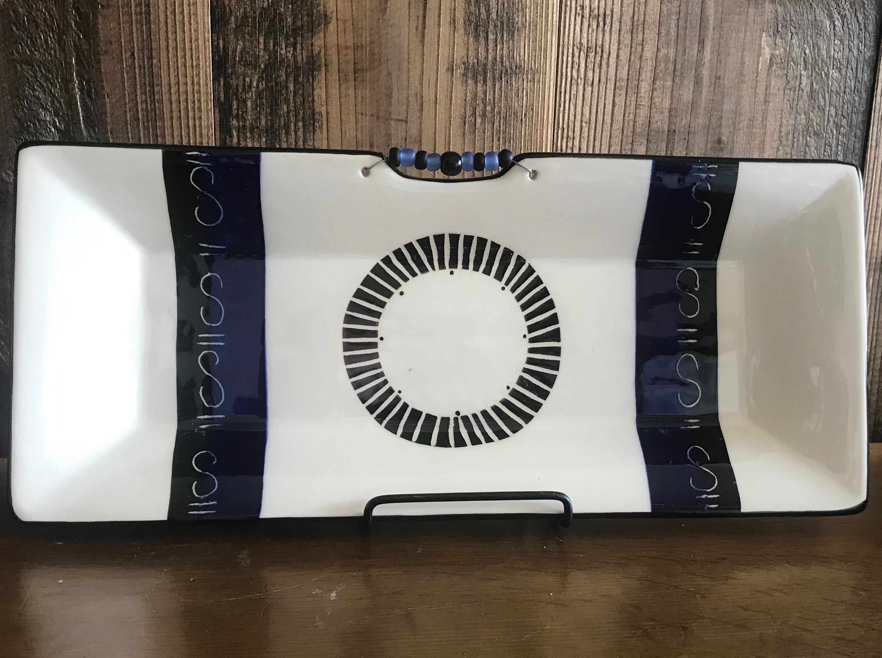 トライバルデザインが施された青と黒のシンプルなデザインです。
